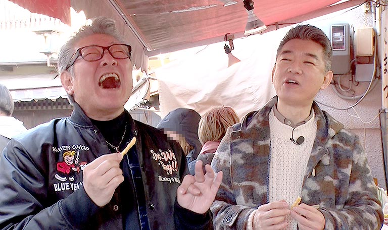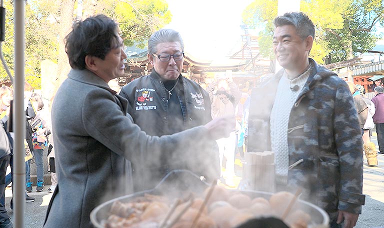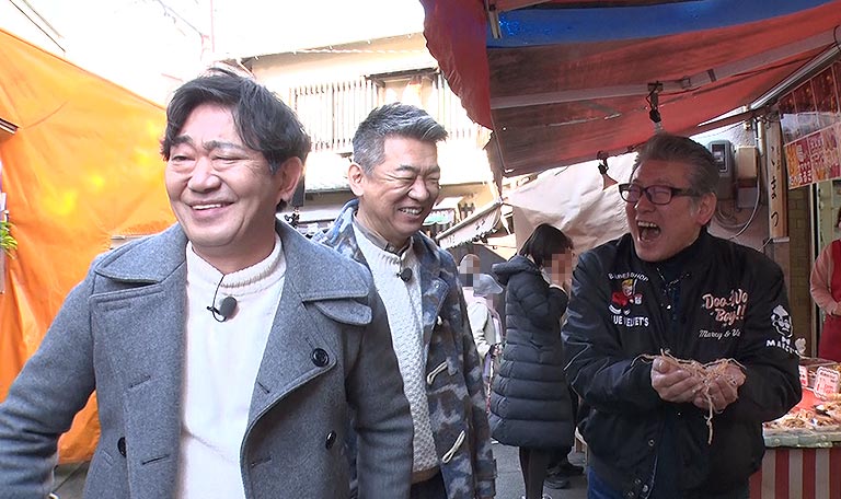 ゲストに橋下徹、元シブがき隊のふっくんこと布川敏和を迎え風情と活気あふれる石切へ!始まって早々体にガタが来ている話が尽きない3人ですが石切劔箭神社でお参りした後、おでんを食べることに。チビ太のおでんスタイルのおでんに盛り上がる3人だったがお支払いで黒田と橋下が大揉め!?さらに出来立てのさきいかが食べられるお店に向かうも黒田は痛風の為食べられず・・・。続いて向かったのは、よもぎを使ったメニューが豊富にそろったお店へ。ふっくんのアイドル時代の㊙交友関係を聞いていると店のオーナーも黒田の昔の話を暴露!?そして、東大阪と協定を結びお店をオープンしたナウル共和国パビリオンにも行くことに。そこでは黒田とグンカンドリの意外な共通点があった!最後はつけもの道場でぬか漬け作り体験に挑戦しながら3人の母親について色々語っていきます。